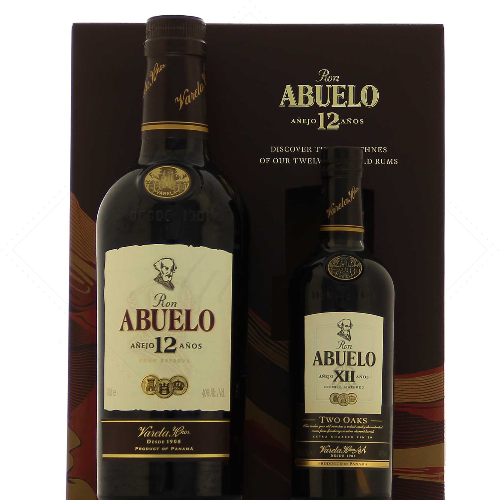 Abuelo 12 ans est ici accompagné d’une petite bouteille de 20 cl d’Abuelo two Oaks.