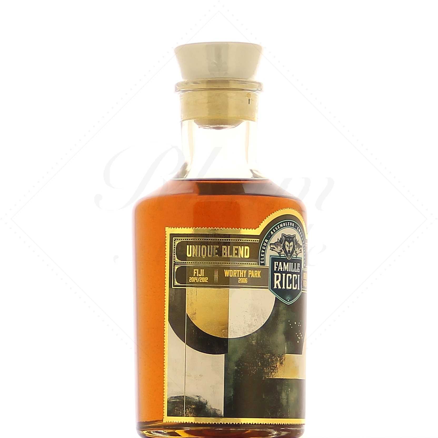 Famille Ricci – Unique Blend N°4 – Fiji & Worthy Park réunit des rhums en provenance des îles Fidji et de la Jamaïque, produits respectivement par les distilleries South Pacific et Worthy Park.