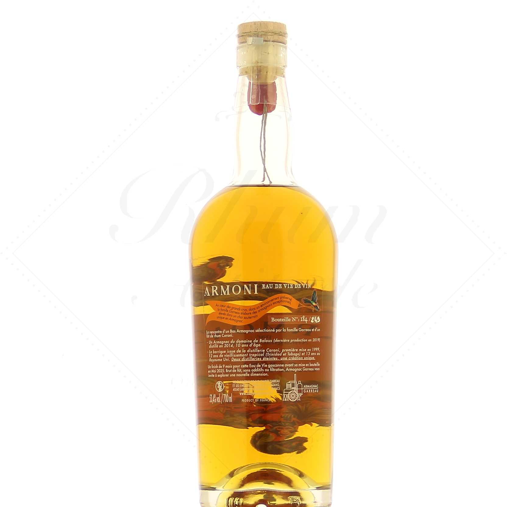 Château Garreau Armoni est une eau-de-vie de Gascogne originale et limitée, qui réunit l’élégance du Domaine de Balous à l’influence tropicale de la légendaire distillerie Caroni.