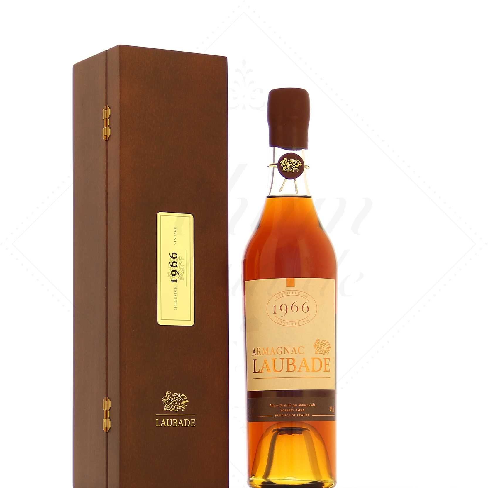 Ce Bas-Armagnac de la Maison Laubade se présente fièrement dans son écrin de bois orné du millésime.