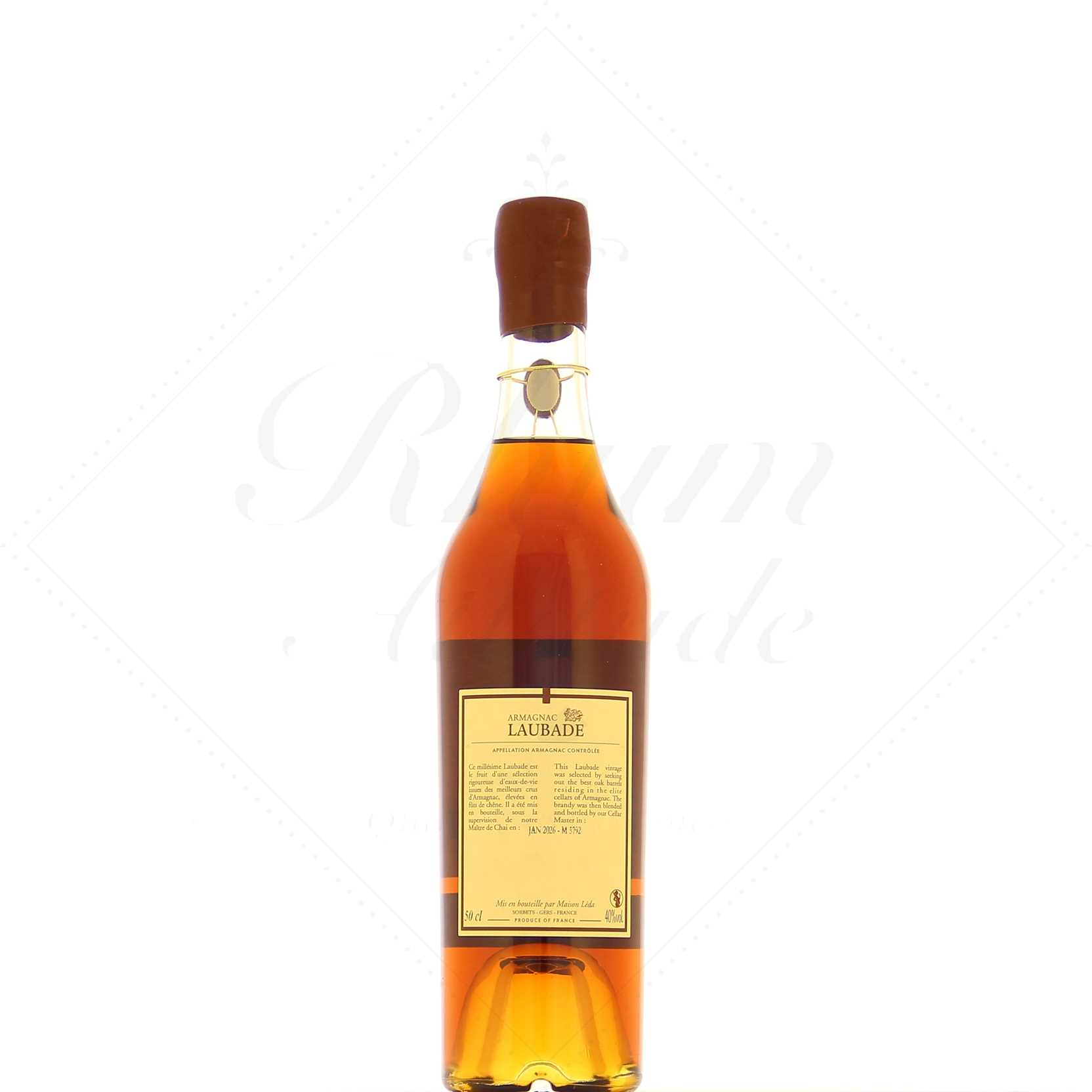 Il a été vieilli pendant 50 ans en fût de chêne gascon, avant d’être transféré en dame-jeanne afin de préserver ses qualités gustatives sans subir une trop grande perte de volume due à la part des anges. Les dames-jeannes sont entreposées dans le chai appelé « Le Paradis ».