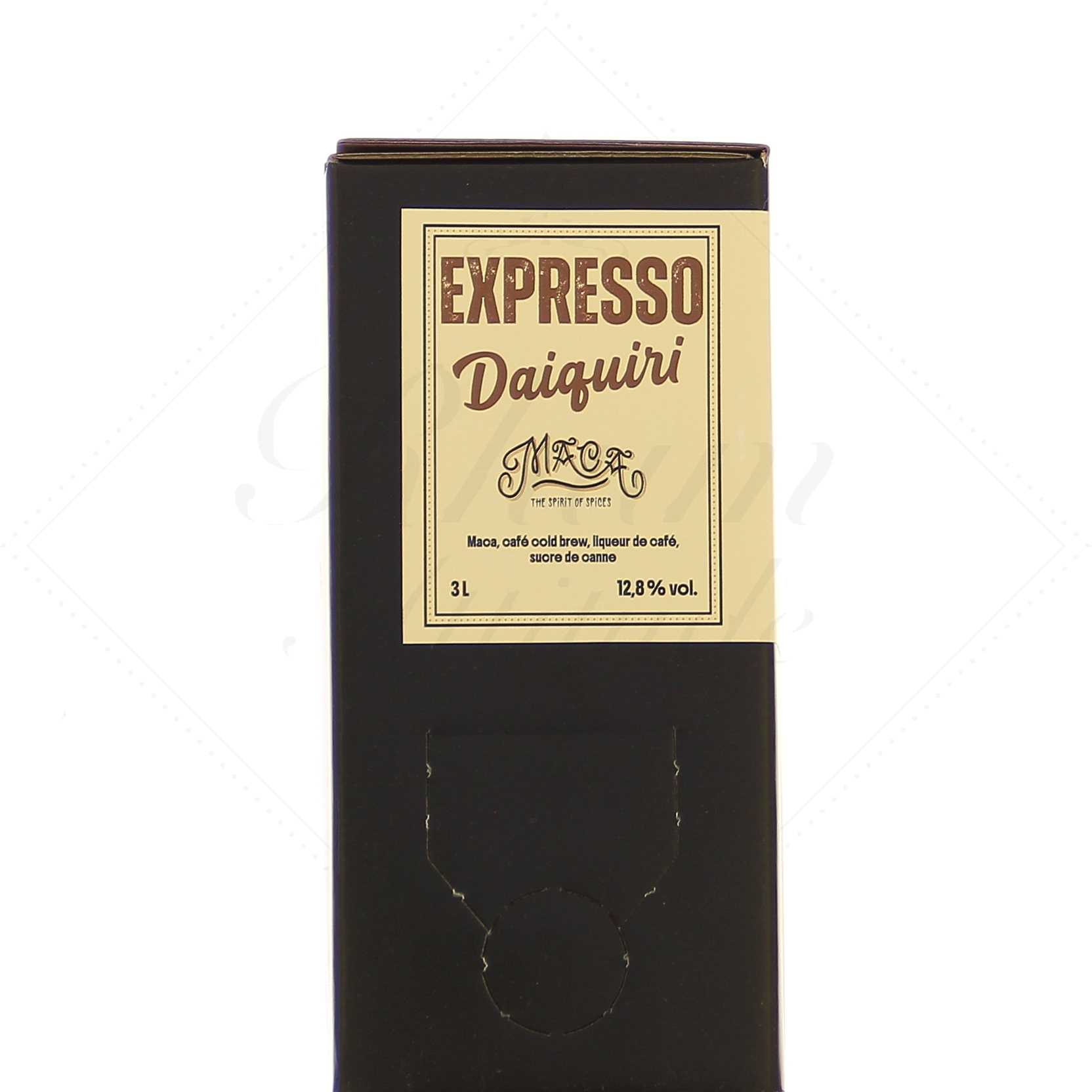 Il s’agit d’un Espresso Daiquiri, composé de rhum Maca, de café pressé à froid, de liqueur de café et de sucre de canne. À servir de préférence avec des glaçons.