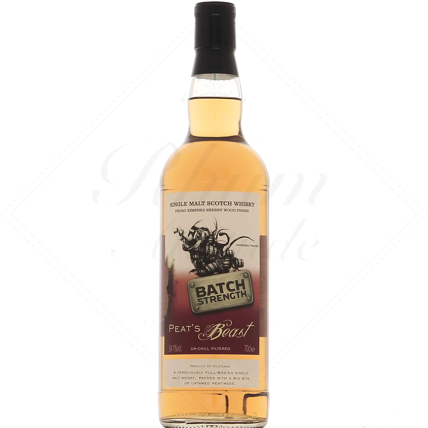 Première édition limitée de la gamme Peat’s Beast, ce whisky très tourbé est élevé en fûts de chêne américain et affiné en fût de Pedro Ximenez pendant 9 mois.