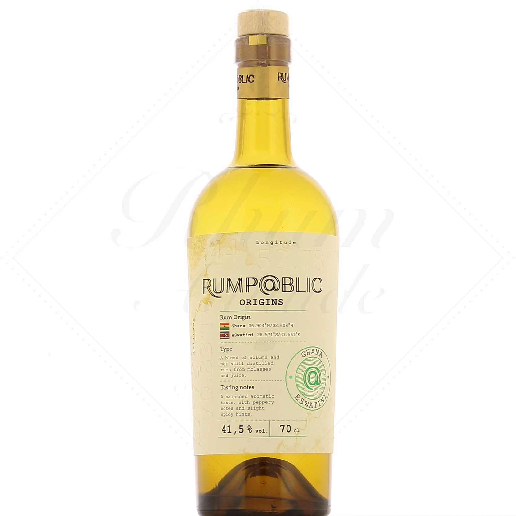 Ce rhum est un assemblage pour 55% de rhum ghanéen distillé en alambic à repasse à partir de jus de canne, et pour 45% de rhum Eswatini distillé en alambic à colonne à partir de mélasse.