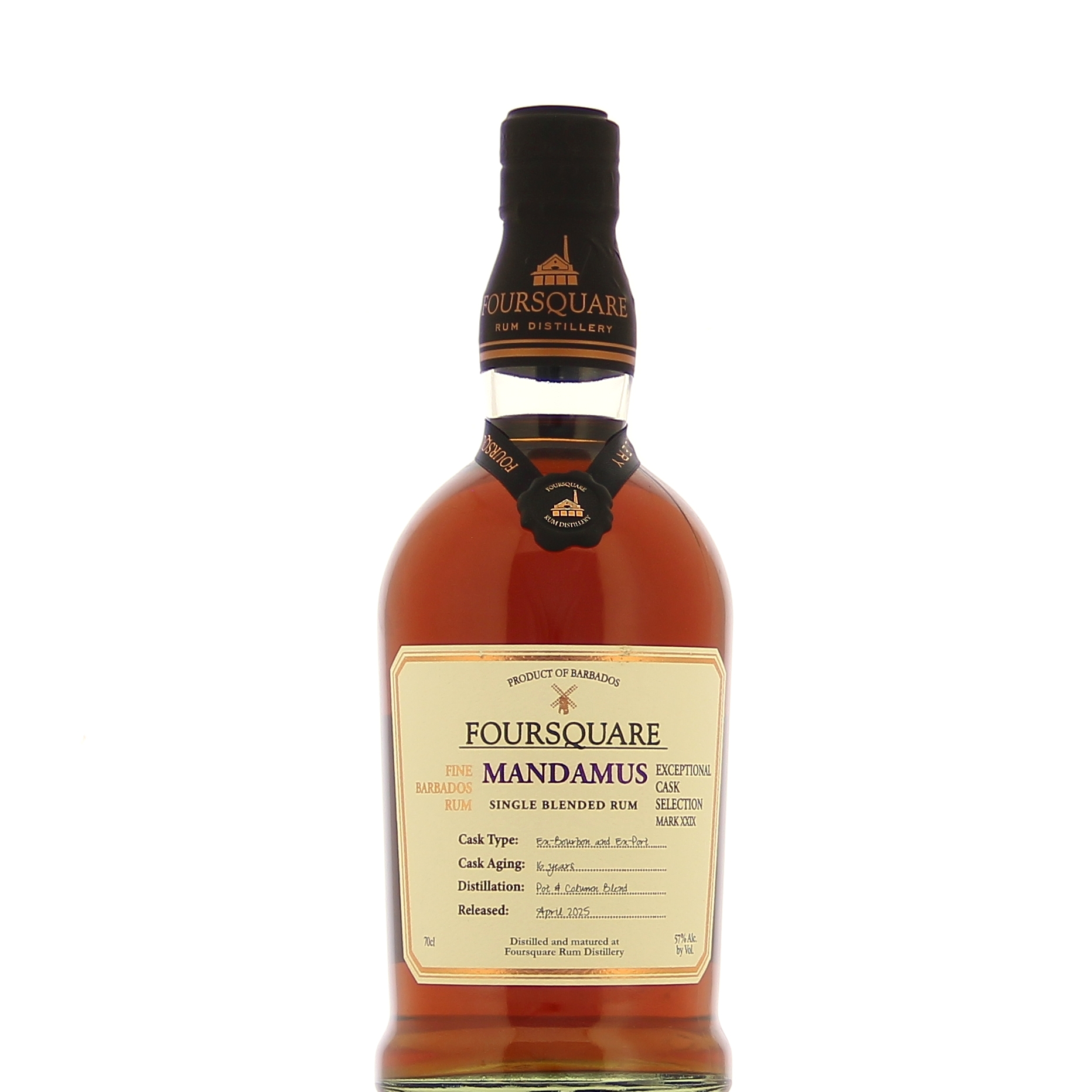 Foursquare Mandamus 16 Year Old is a Barbadian molasses rum that is part of the “Exceptional Cask Selection” range. It is made from pot still and column coffey distillates, then aged for 10 years in ex-bourbon casks, and 6 years in ex-tawny port pot casks.