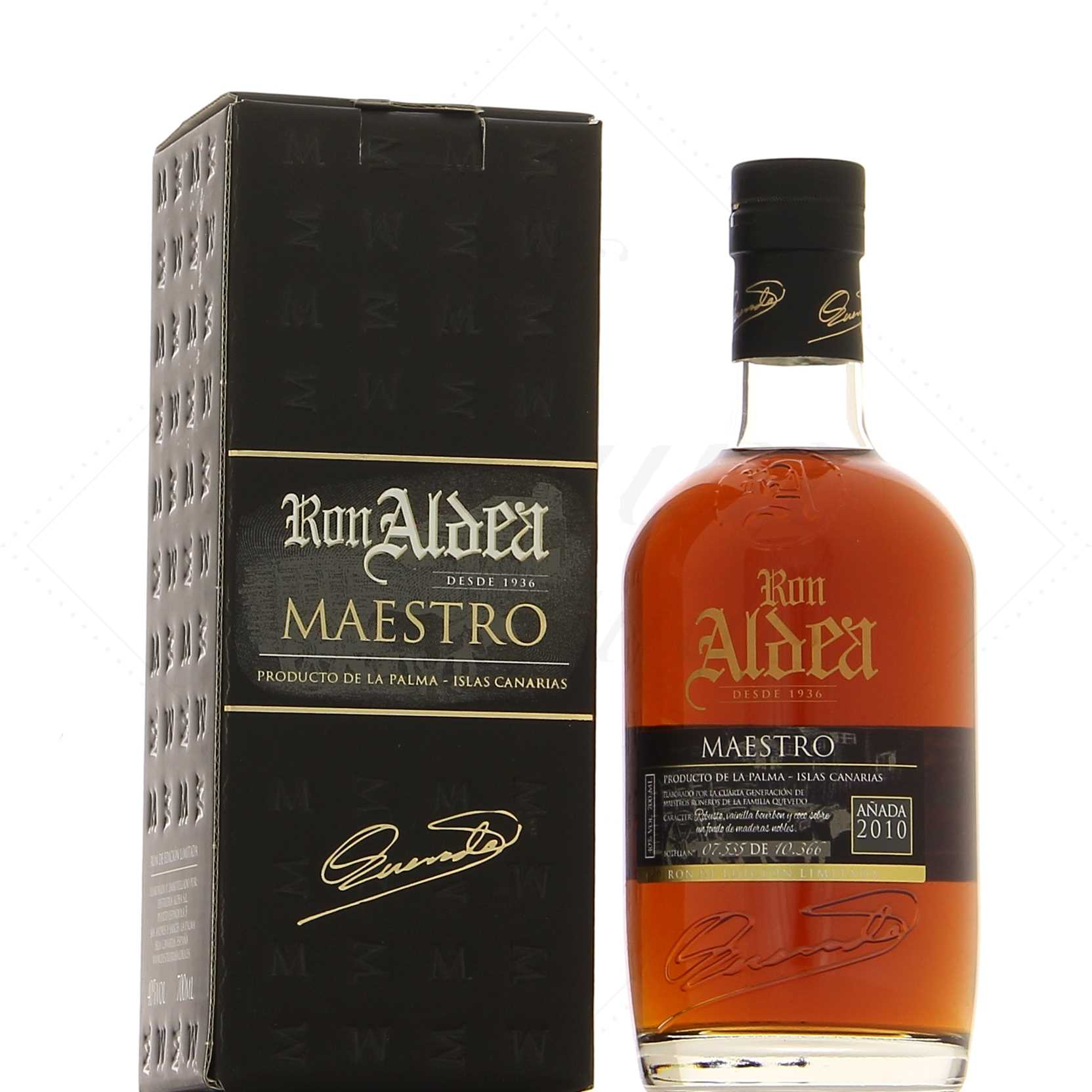 Aldea Maestro 2010 est un rhum pur jus de canne âgé de 10 ans. Distillé en 2010 au sein du domaine familial des îles Canaries, ce rhum est vieilli intégralement dans des fûts de chêne blanc américains ex-bourbon. Il s’agit d’une édition limitée à 10366 bouteilles numérotées.