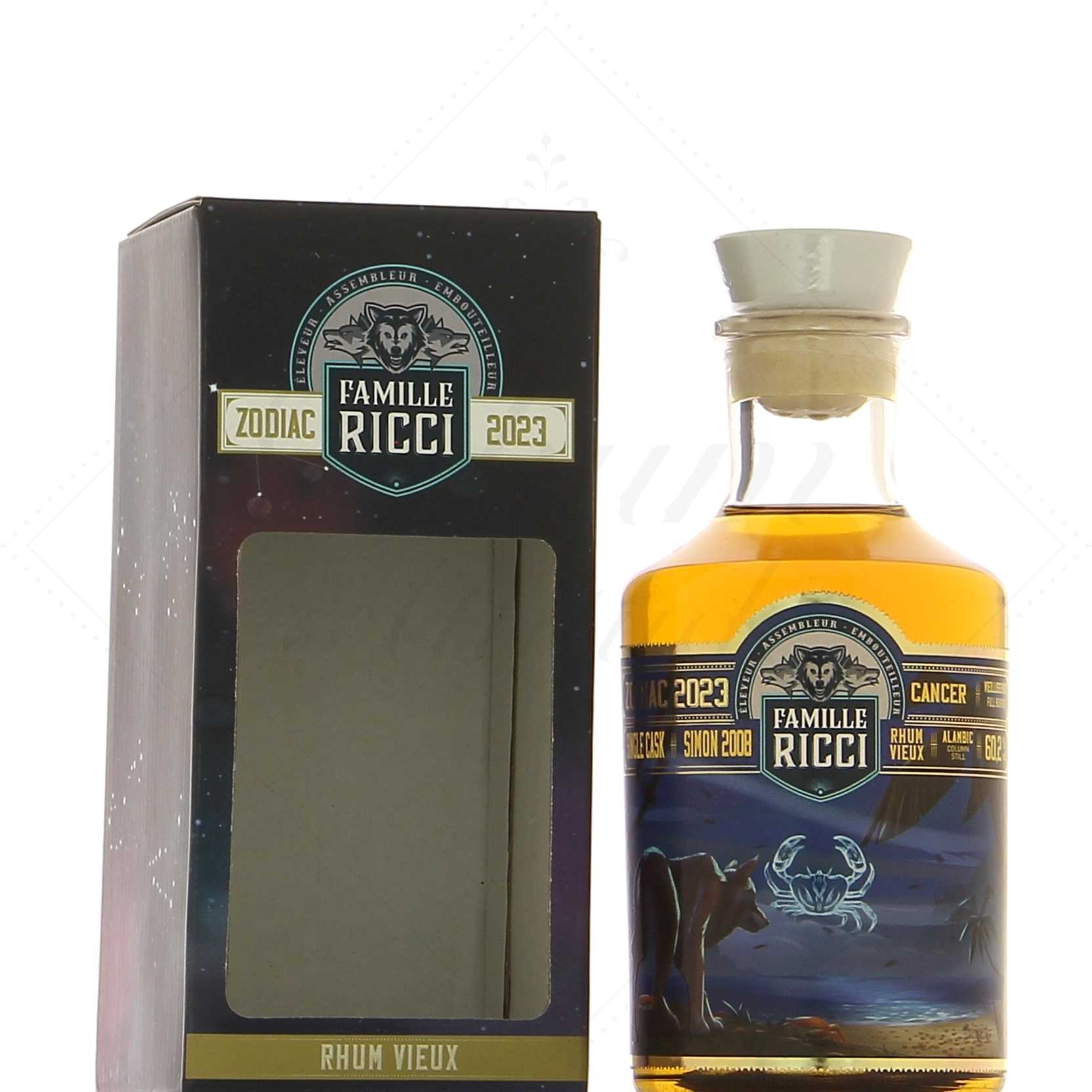 Ce rhum agricole de la Martinique a été distillé à l’Habitation du Simon en 2008. Il s’agit du signe Astrologique Cancer de la collection Zodiac présentée par la Famille Ricci. Vieillie intégralement dans un ancien fût de bourbon, cette cuvée a été produite à 290 exemplaires. Il n’y a eu aucun ajout et aucune réduction.